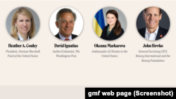 Германскиот Маршалов фонд објави детален документ за потенцијалниот Маршалов план за Украина. Исто така, фондот е жив споменик на Маршаловиот план и ние сме подарок што беше создаден пред 50 години, пред 51 година, речиси во знак на благодарност за она што американскиот народ го направи за да ја врати силата, просперитетот и надежта на 16 европски земји по завршувањето на Втората светска војна, рече претседателката Конли која се согласува со амбасадорката Оксана, дека реконструкцијата е столб на победата во војната.