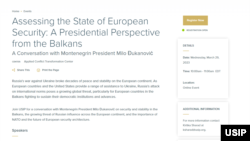 Шефот на црногорската држава даде проценка на состојбата на европската безбедност и понуди, лична, претседателска перспектива за Балканот на виртуелниот настан во организација на американскиот Институт за мир во Вашингтон.
