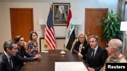 Блинкен се состана со ирачкиот премиер Мохамед Шија ал-Судани во Багдад, откако полета од Анкара со авион на американските воздухопловни сили Ц-17.