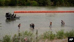 Властите во југозападната американска држава почнаа да поставуваат низа пловци на средината на реката во близина на градот Игл Пас минатата недела, дел од иницијативата на републиканскиот гувернер Грег Абот наречена Операција Осамена ѕвезда за одвраќање на мигрантите.