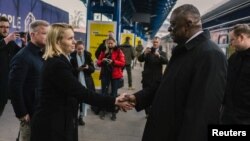 Остин на железничката станица во Киев беше пречекан од амбасадорката на САД во Украина, Бриџит Бринк и одбранбеното аташе на САД, бригадниот генерал Киплинг Калер, а на патувањето им се придружи и американскиот генерал Кристофер Каволи, кој служи како врховен командант на НАТО во Европа и шефот на европската команда на САД.