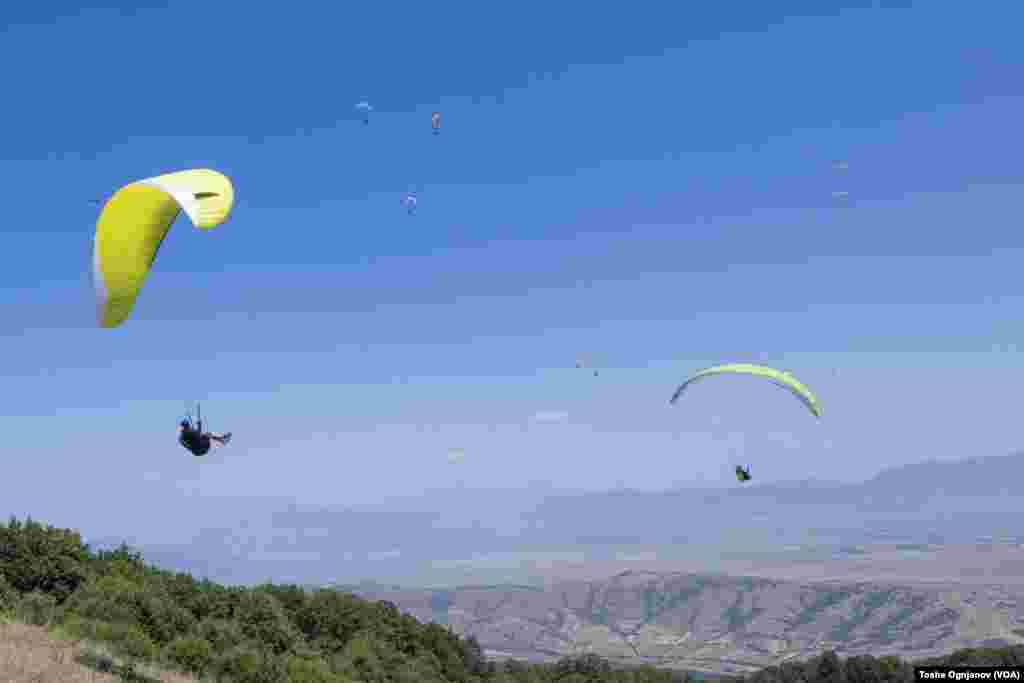 Педесетина параглајдеристи викендов полетуваа од полетиштето во близина на Мечкин камен. Како што ни објаснија дел од учесниците, Крушево го сметаат за една од најдобрите дестинации во светот за овој спорт, кој зема сè поголем замав.