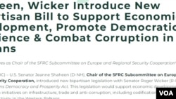 Комитетот за надворешни работи на Сенатот на САД ја изгласа двопартиската легислатива, чија цел е да се зголеми трговијата и инвестициите меѓу САД и Западен Балкан, и да помогне во борбата против корупцијата.