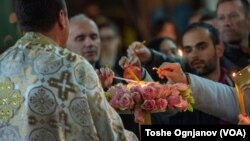 Во соборната црква „Св. Климент Охридски“ многумина од верниците чекаа во долг ред за да запалат свеќи токму од огнот донесен од Ерусалим.