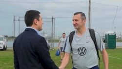“Возбудливо. Многу сум возбуден и среќен што имам можност да бидам тренер на оваа репрезентација”, објаснува пред камерата на Гласот на Америка.